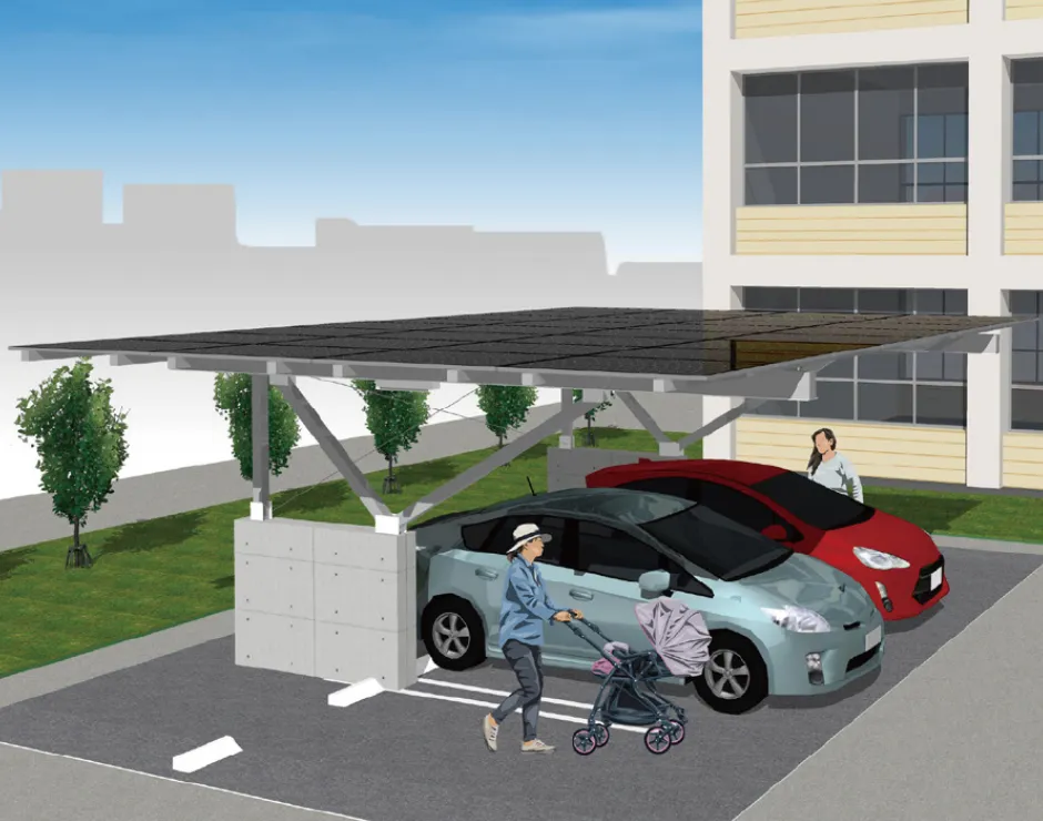 駐車場を太陽光発電所にした『そらぽーと 』。発電したエネルギーの活用だけでなく、遮熱効果や雨対策によりドライバーや同乗者の快適性も向上します。